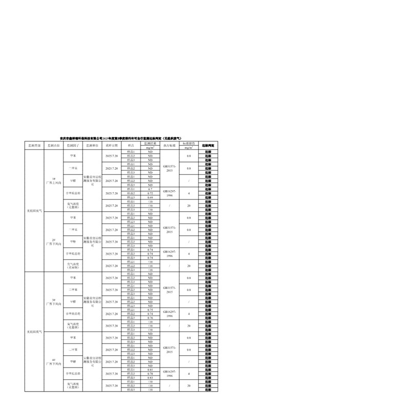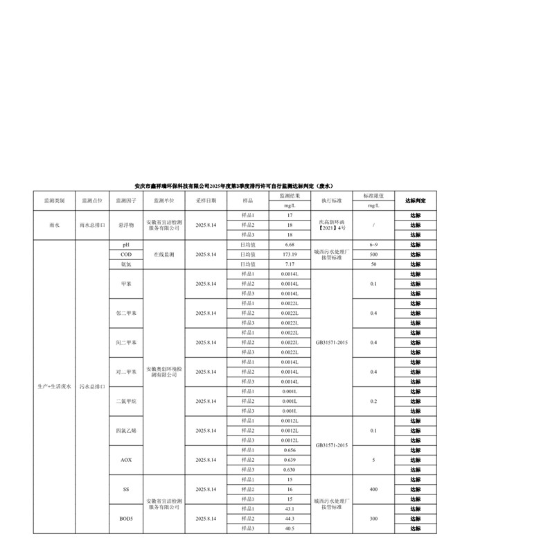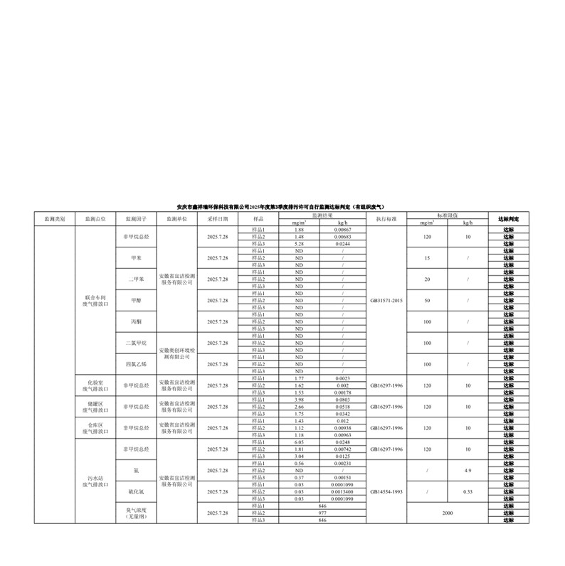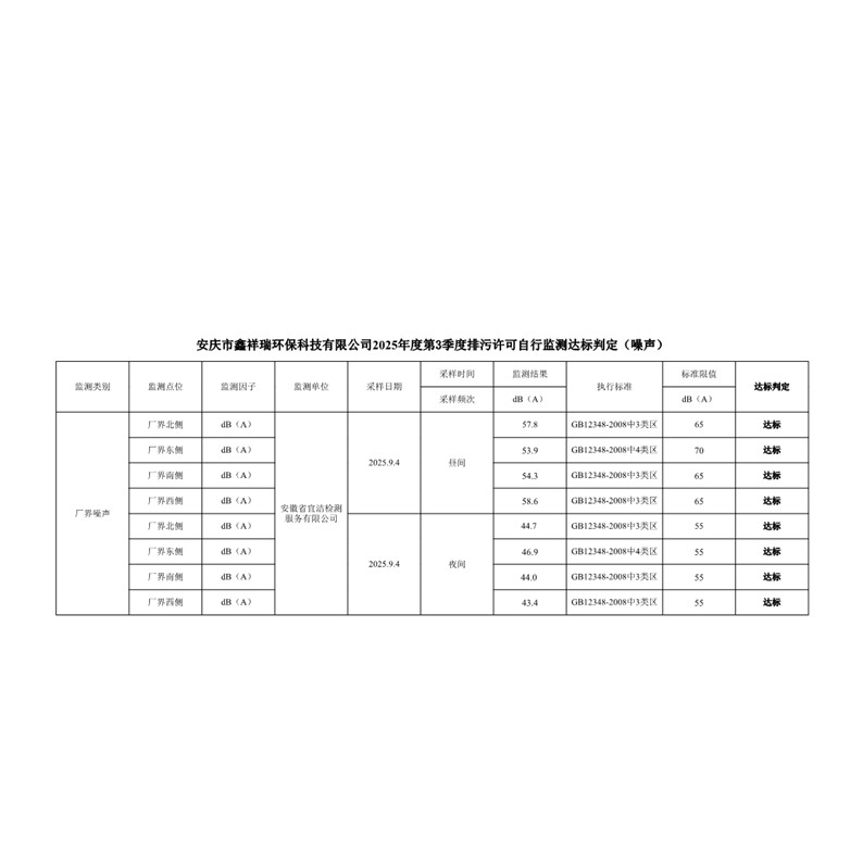 安庆市鑫祥瑞环保科技有限公司2025年第3季度排污许可自行监测公开